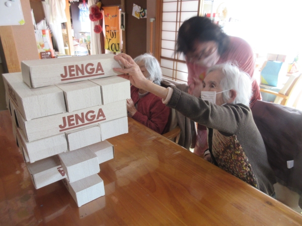 午後のレクは「ジェンガ」です
