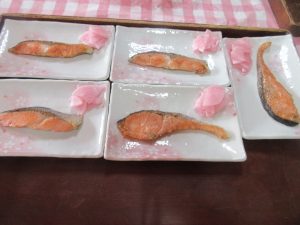 下味をつけた鮭はホットプレートで焼いていきますあせあせ (飛び散る汗)あせあせ (飛び散る汗)あせあせ (飛び散る汗)