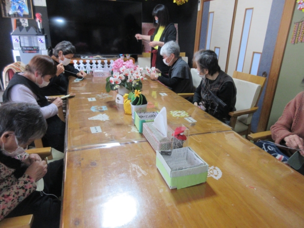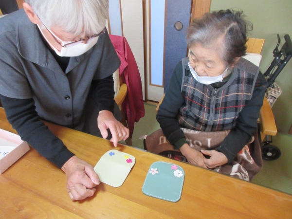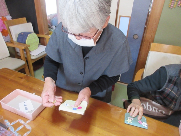 春らしく、好きな花のパーツを選んでもらい、貼り付けて頂きます
