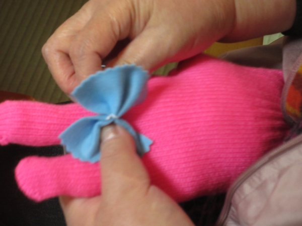 縫い終わった後、各パーツをつけていきます