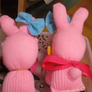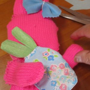 両手(綿を入れてあります)と小さいうさぎを付けていき、