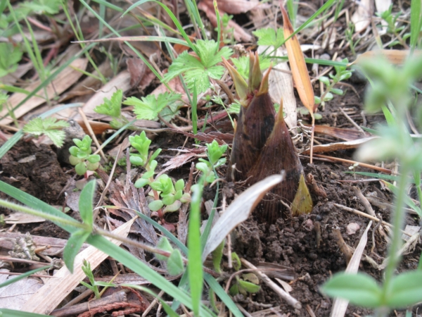 大きな竹の子の近くに、小さな竹の子が出てきましたうまい! (顔)