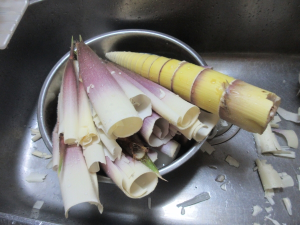 竹の子の皮を取ると、立派な竹の子が出てきましたうまい! (顔)