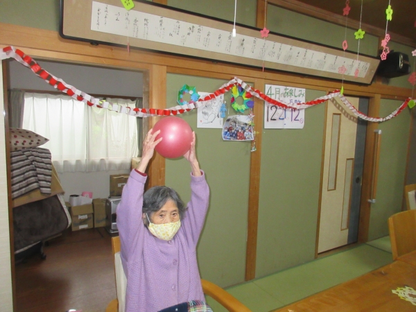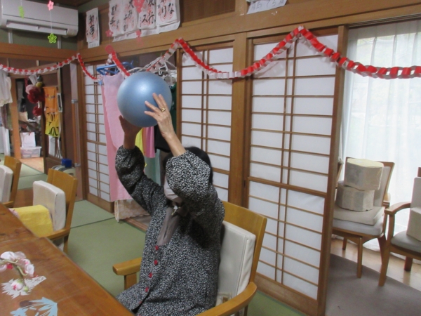 次は、片手でボールをつかんで上に上げていきますよ~グッド (上向き矢印)