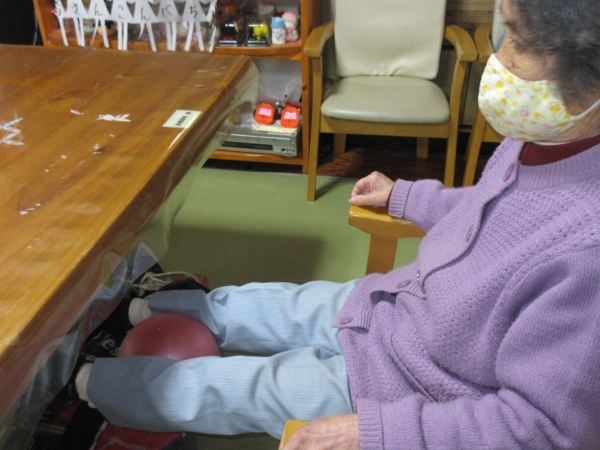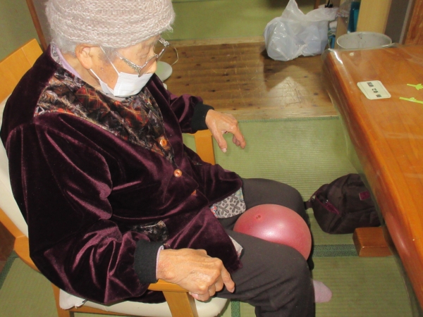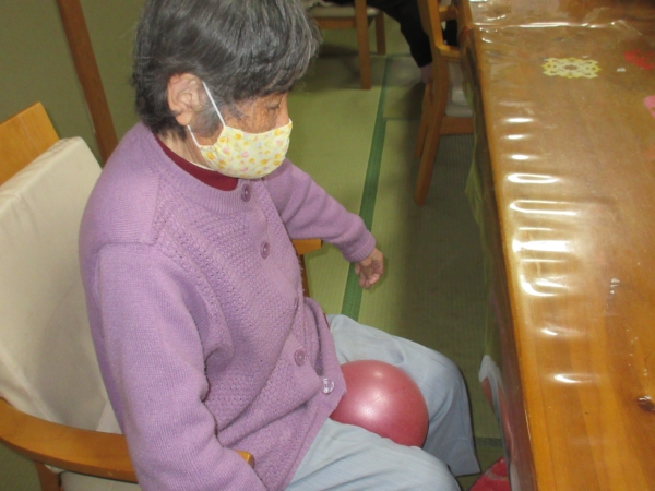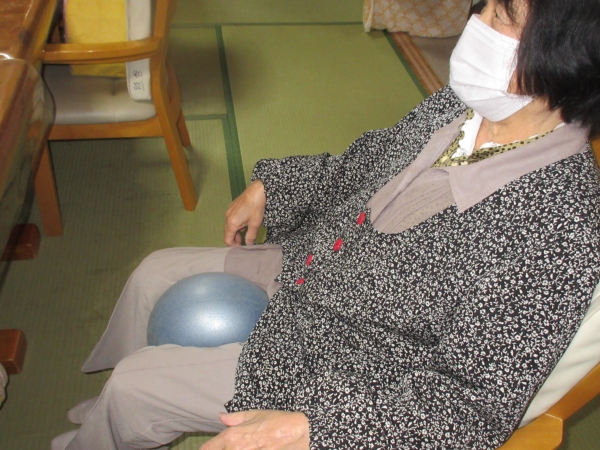 ボールを太ももに挟んで潰すように両足を縮めて下さ~いexclamation