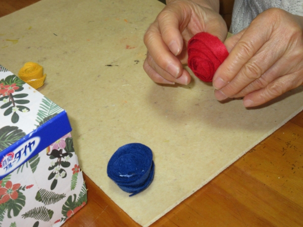 『これをバラの花に見えるように巻いていきます