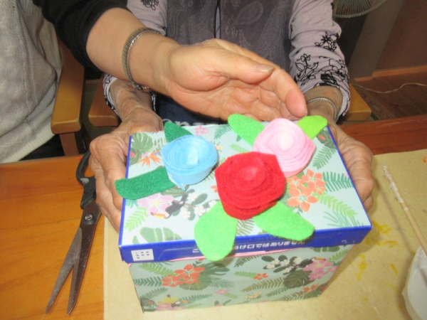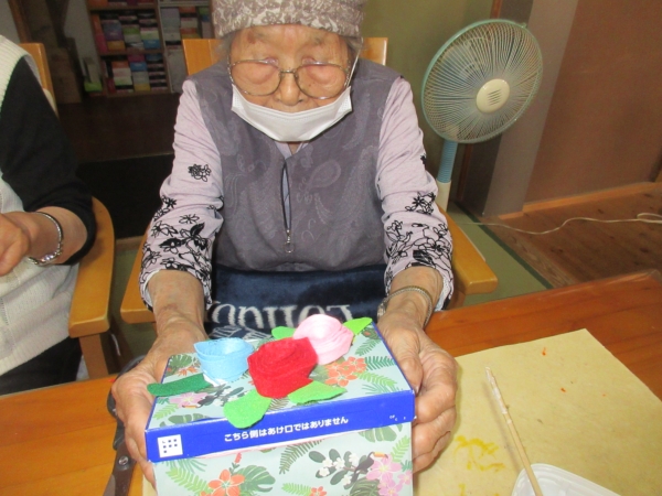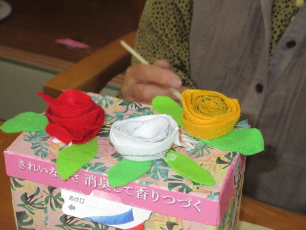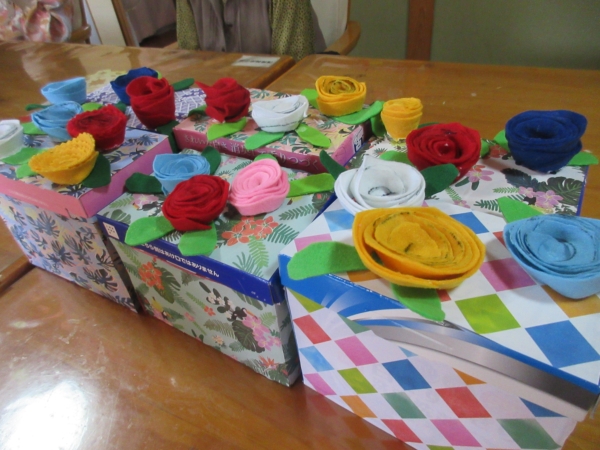 皆様にこちらのバラの小物入れを持ち帰って頂きました