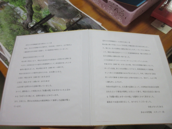 本日の手工芸に使う色紙の裏面に、幸せの幸望庵誕生前の歴史が