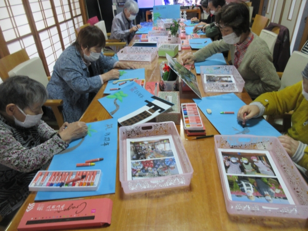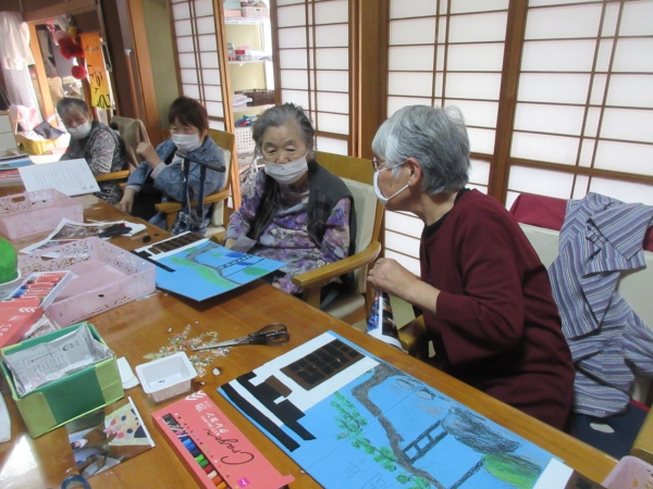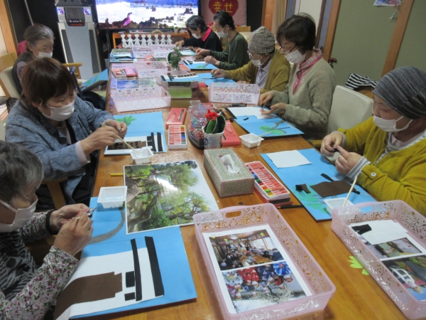 「上手ね~」とお隣りの母の絵に関心しています