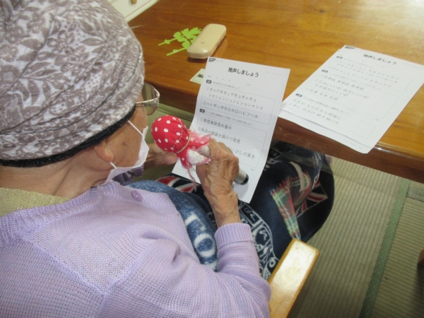 ごぼう先生と手・指の体操を行いましょう