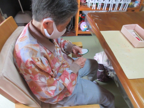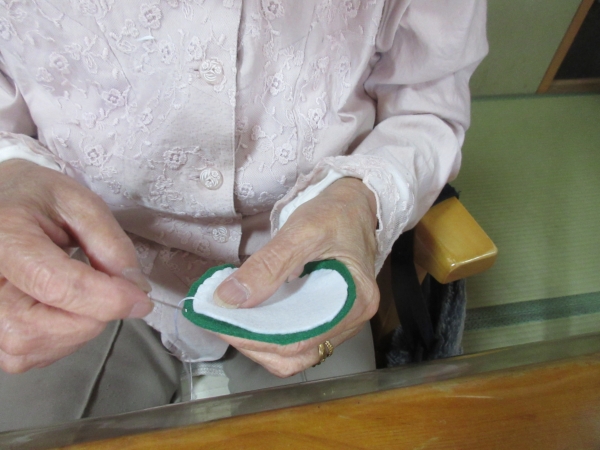 母達は丁寧縫い合わせています