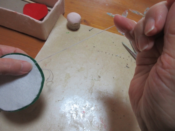 縫い合わせた皮は厚いフェルトに再度縫い合わせます