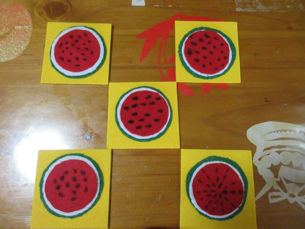 スイカのコースターの出来上がりです