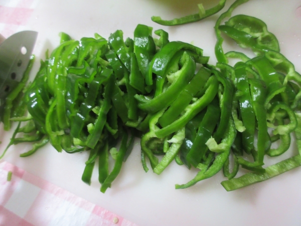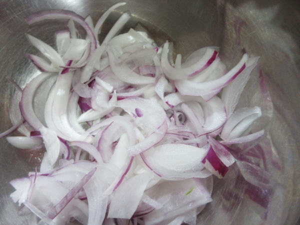 紫玉葱も千切りにして、サラダにのせます