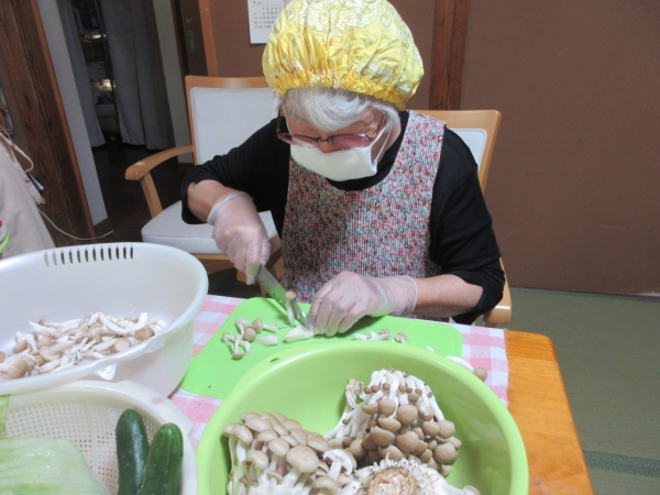 母は、パスタに使うしめじを切っています