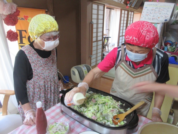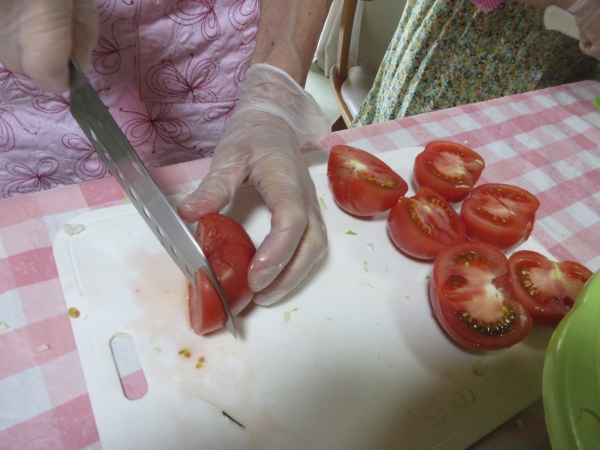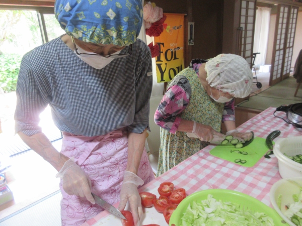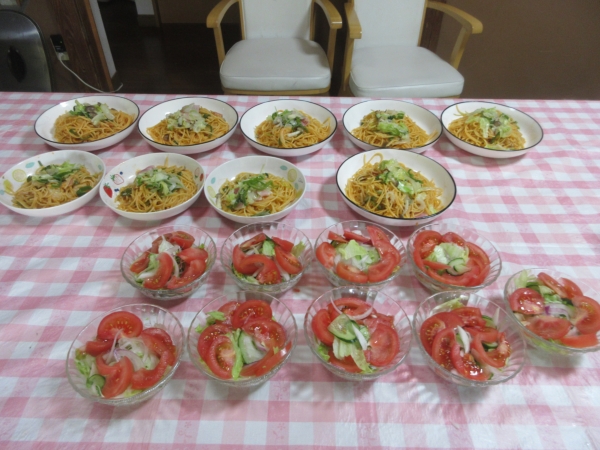 母達は、共同作業でサラダの盛り付けをしてくれました