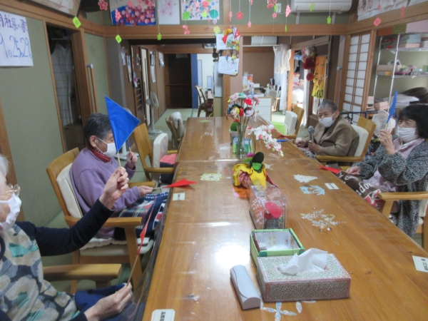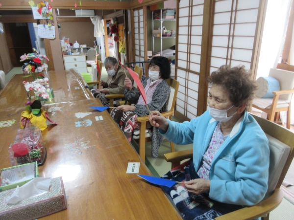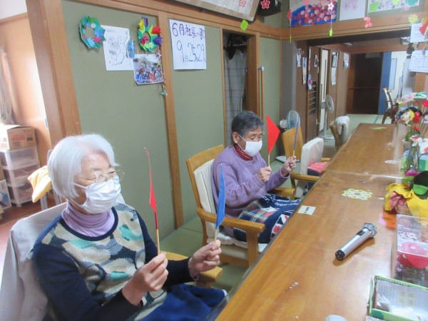 幸せの幸望庵では手作り旗を作り