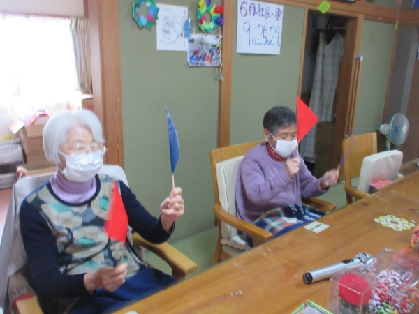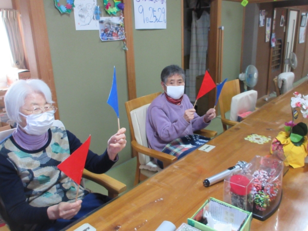 こちらの母は赤と青の旗が上がっています——