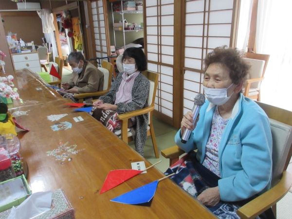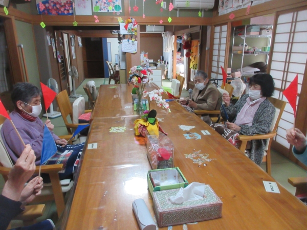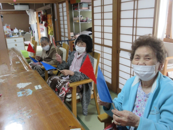 スタッフから母へ旗揚げコ-ルをバトンタッチ