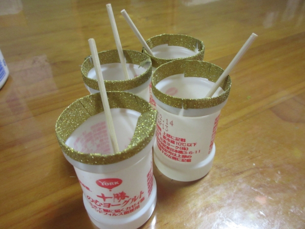 ヤクルトの空容器を使い花瓶を作ります