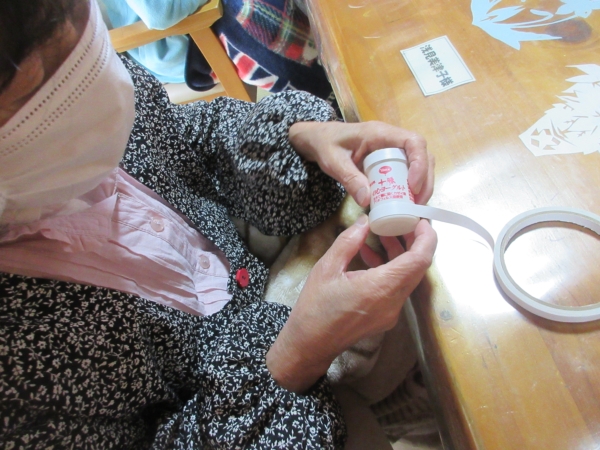 母のアドバイスで幅広テ-プを巻きました