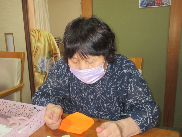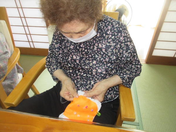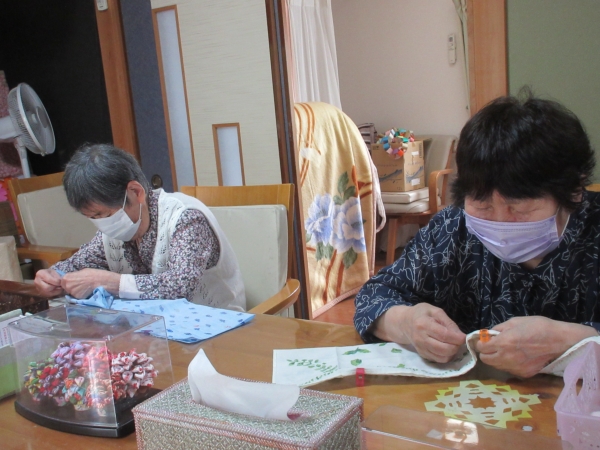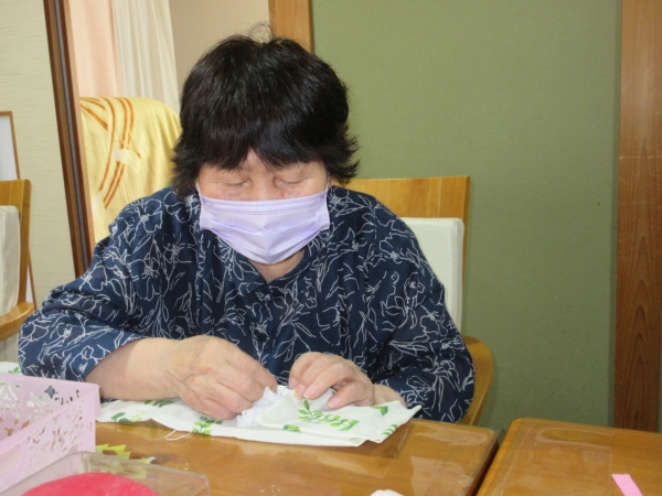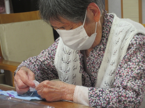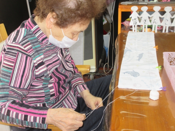 「リハビリになるから頑張るよ」とチクチク針を進めています