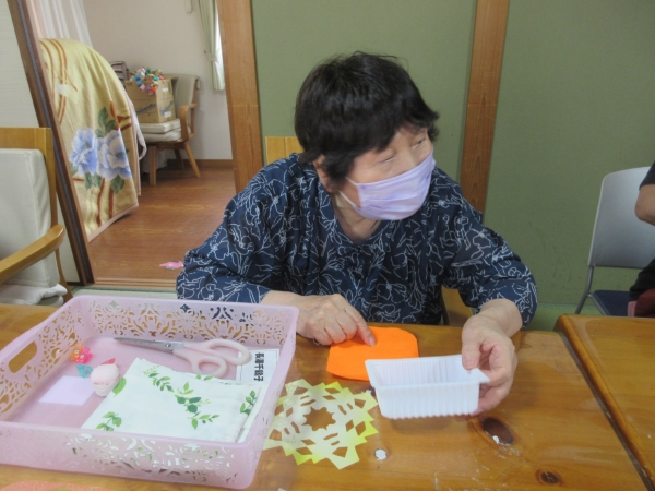 昨日の手工芸で作ったトイレットペーパーホルダーを