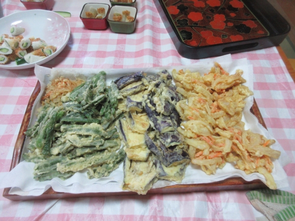 天ぷらを 盛り付けてい行きましょうdouble exclamation