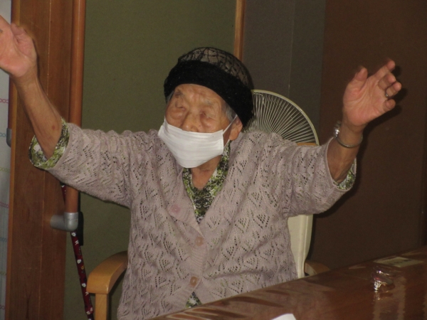 朝会を聴きに蝉さんも参加され、ぼけたらあかんを唱和します。