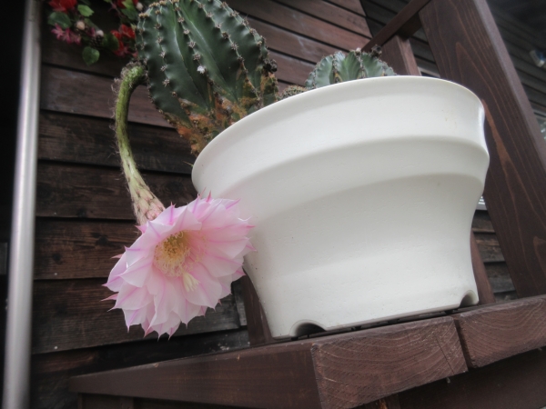 幸せのお庭でサボテンがひっそりとかわいい花が咲かせていました
