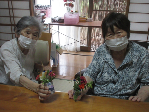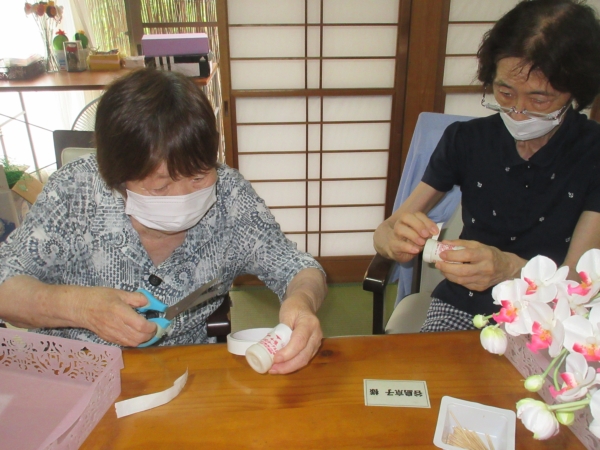 今日は、ヤクルトの空カップを使い、地球に優しいリサイクル作品を作ります