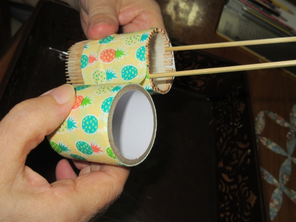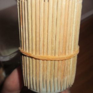 胴体部分に輪ゴムを巻き、そこに楊枝を差し込んでいきます