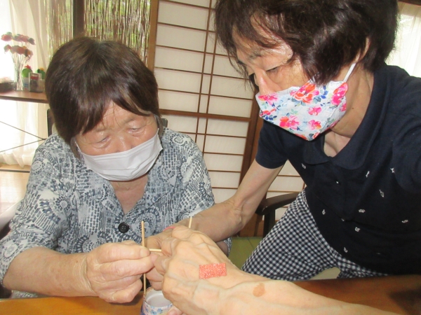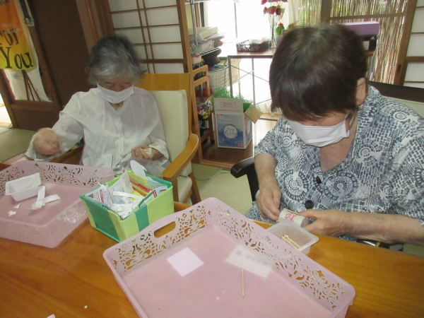 午後は、楊枝をマキシングテープで固定するところから始めます