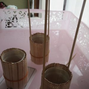 持ち手となる竹串は、ハサミで切り取り長さを調整します。