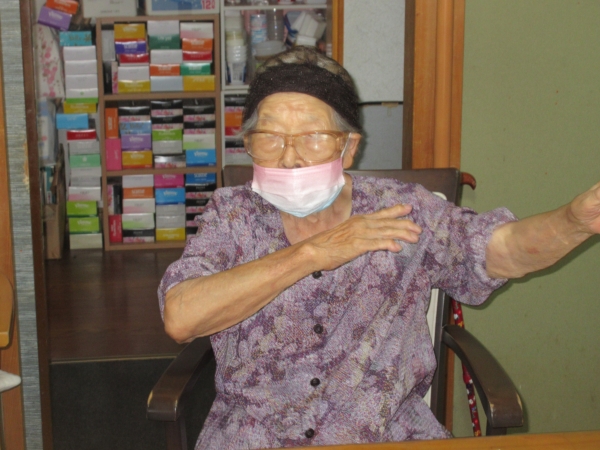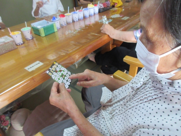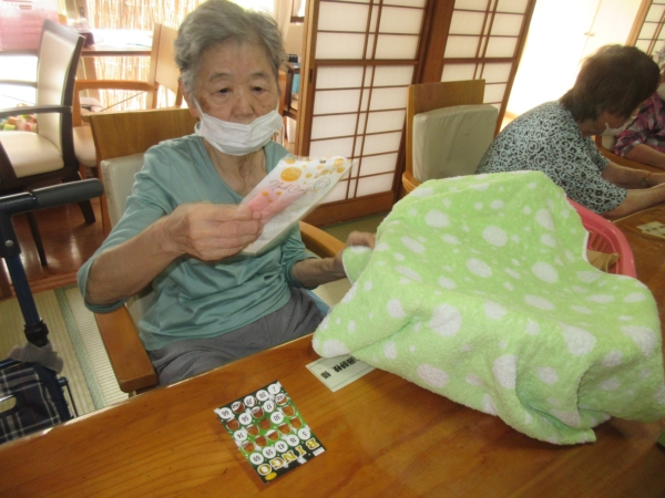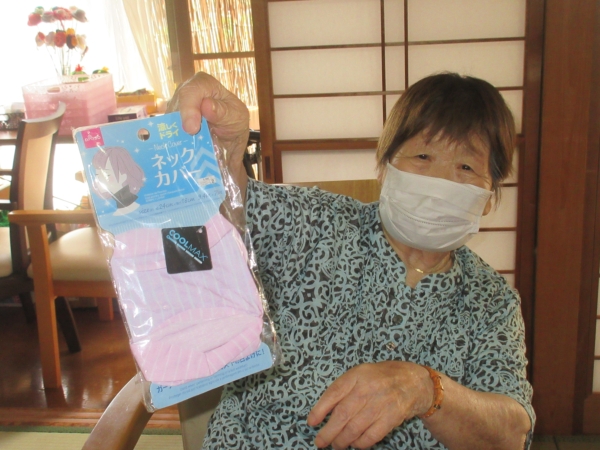 最後のビンゴの母は夏らしい涼しさを体幹出来るネックカバーでした
