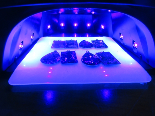 専用のUVライトでレジンを硬貨していきましょう