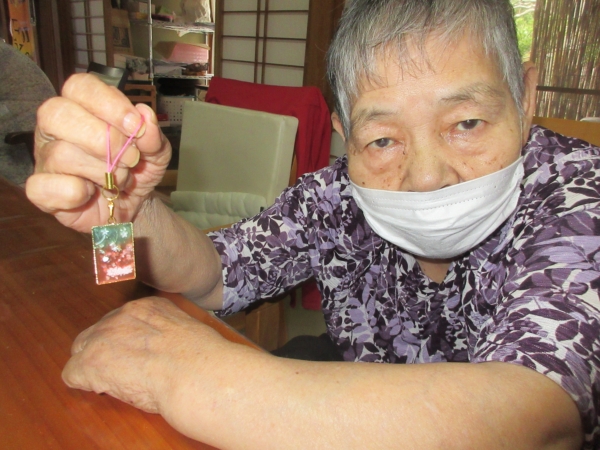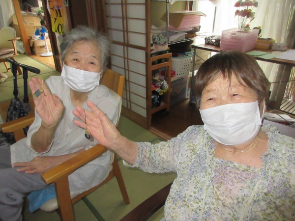 なくさないように、「ここに掛けて行こうかしら」と