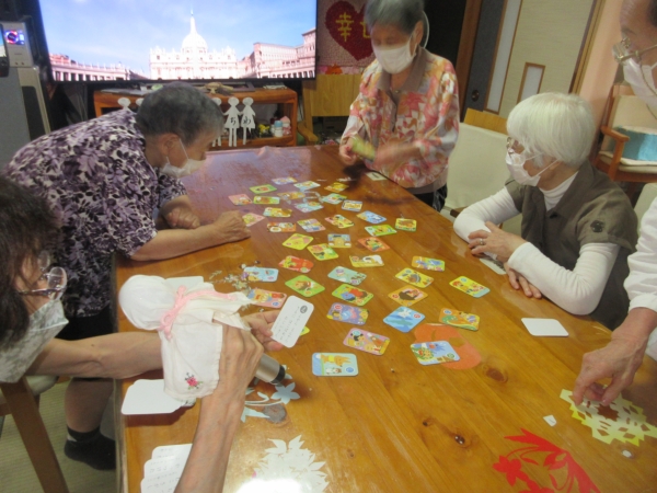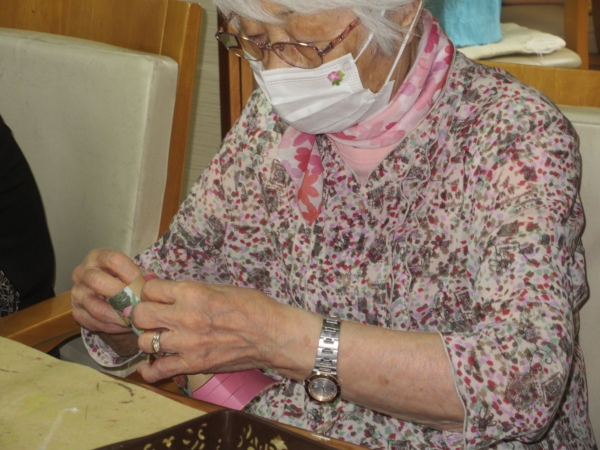 一休みをしたら、夏祭りの飾り作りの続きをします。