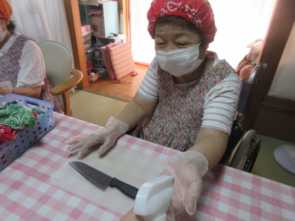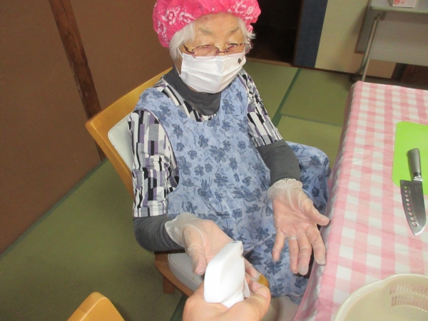 エプロン・グローブ・消毒・マスクを付け、さぁー開始です