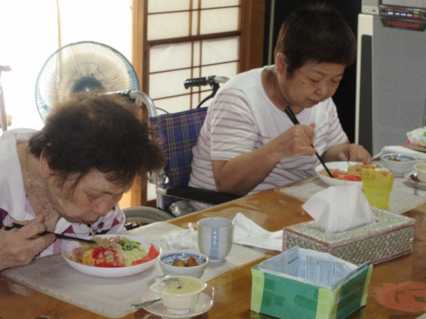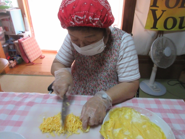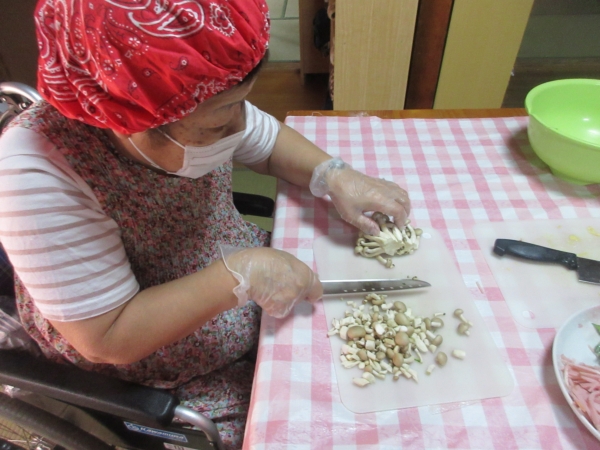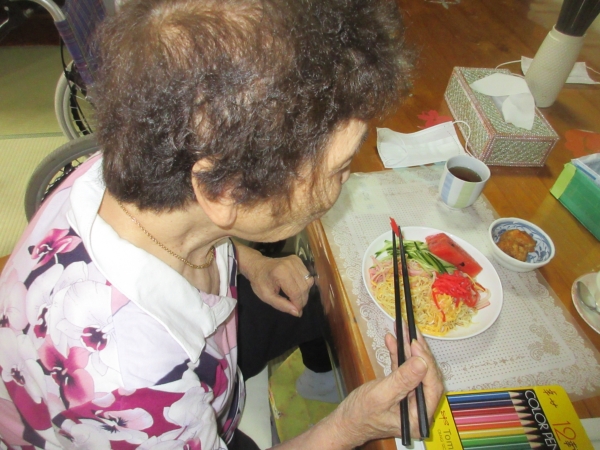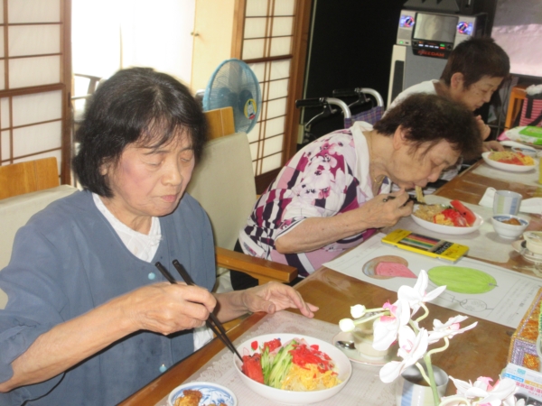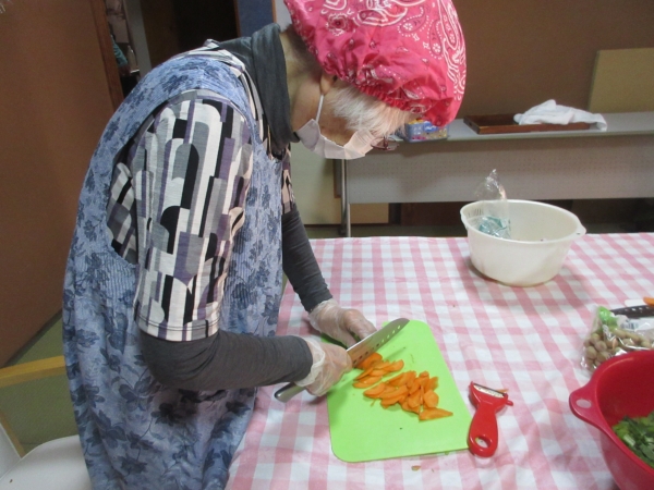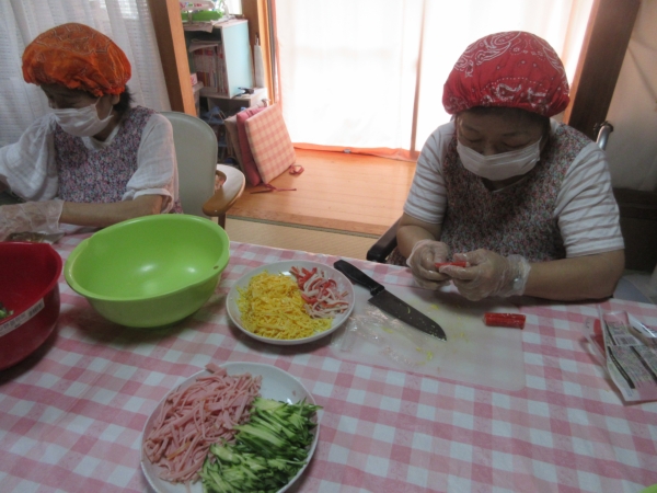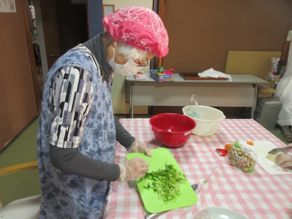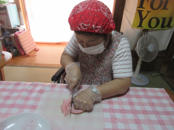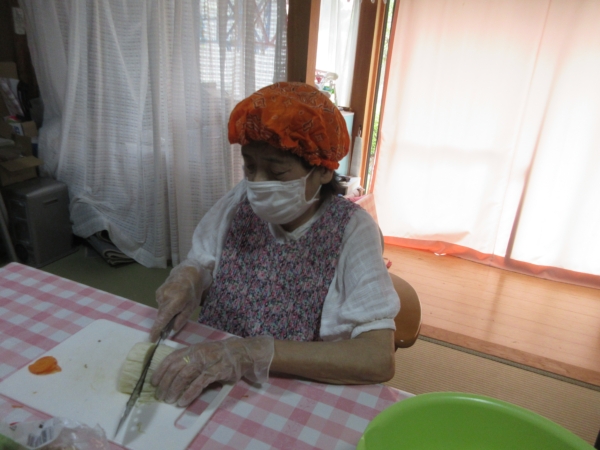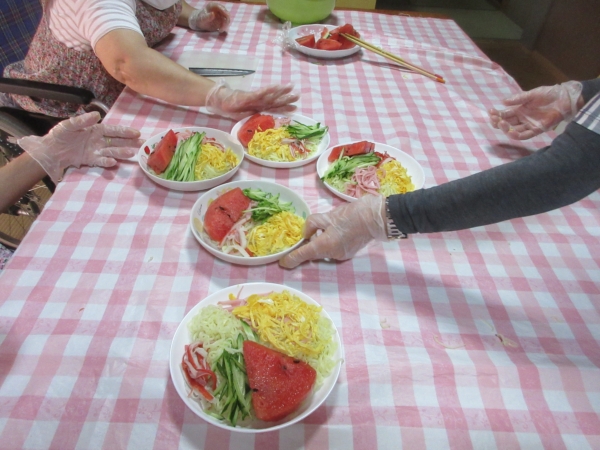 盛り付けも、見本を見ながらせっせと盛り付けが進みます