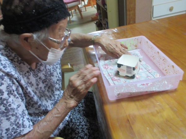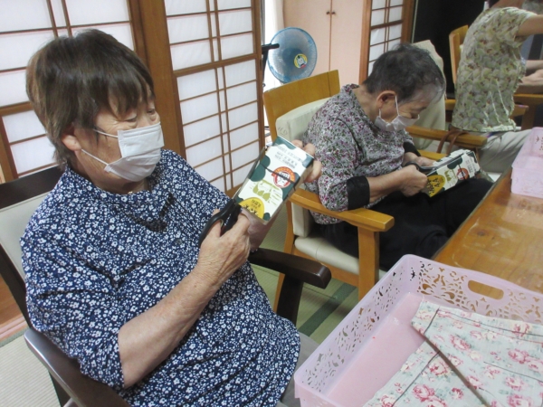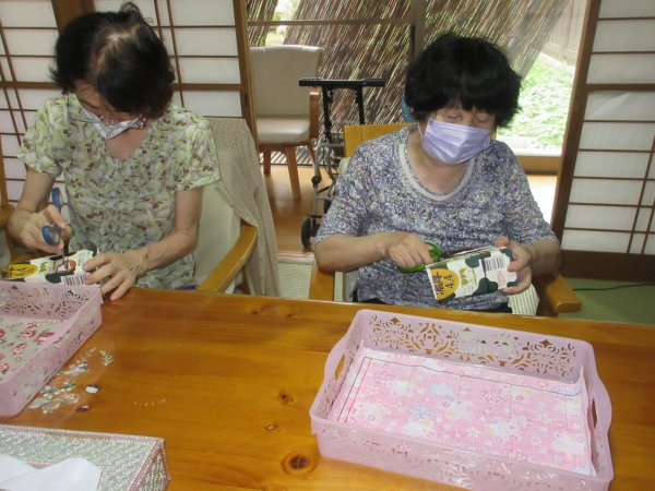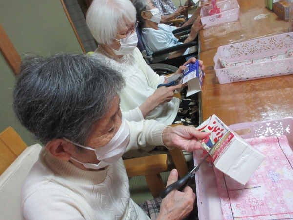 こちら二人の母も牛乳パックの型紙が切り終わりました