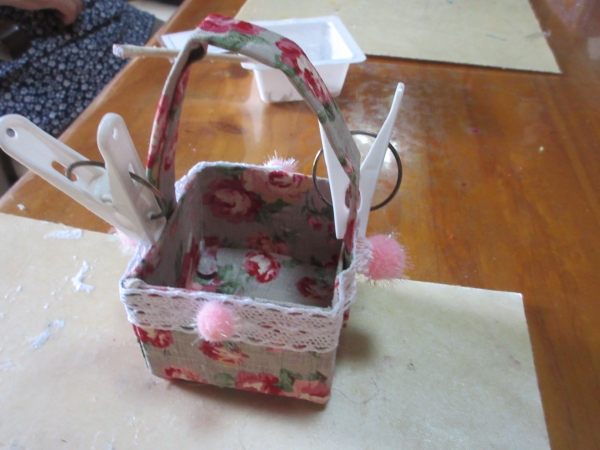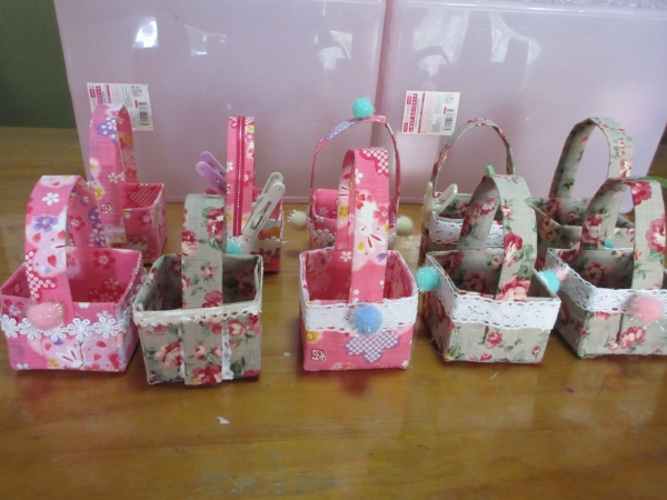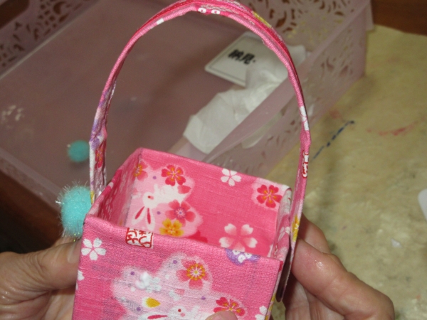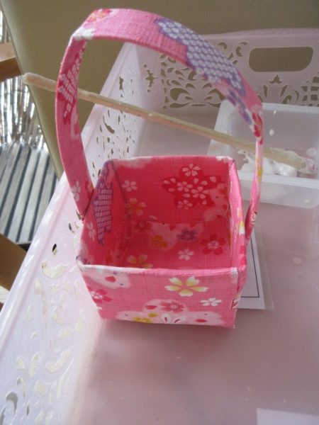牛乳パックを切り、布をはり