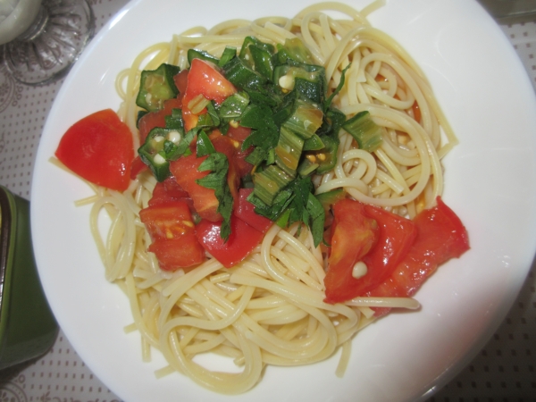 オクラと一緒に味付けると、本日のメインの冷静パスタのタレになります。