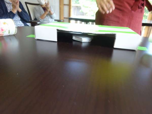 ティッシュケースを使ってパックをお相手の隙をついて上手にゴールを決めてくださいね