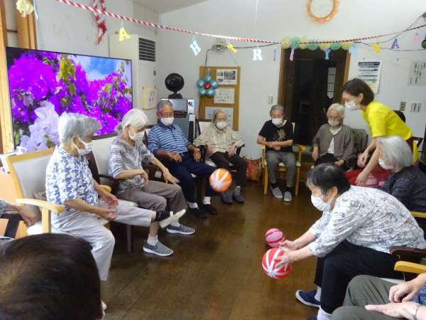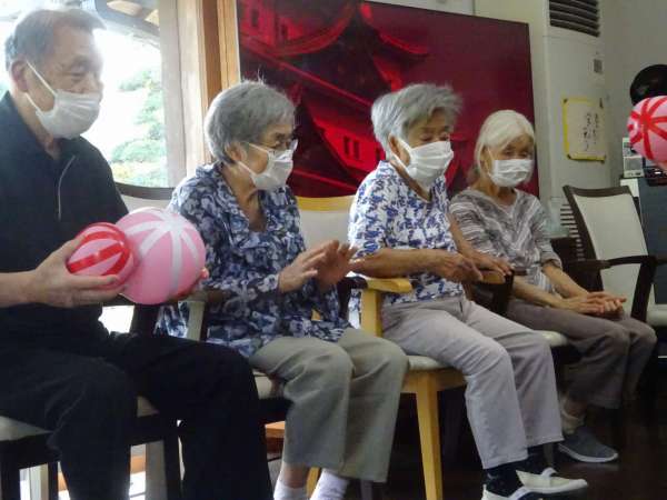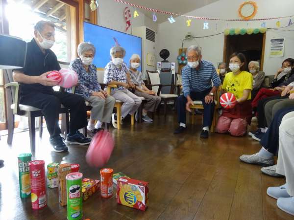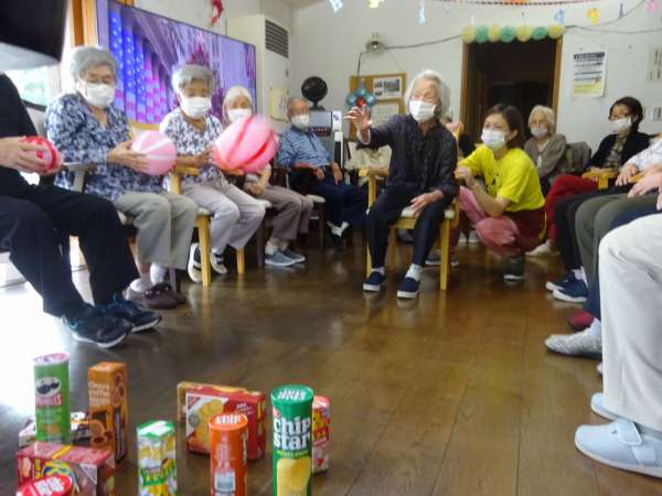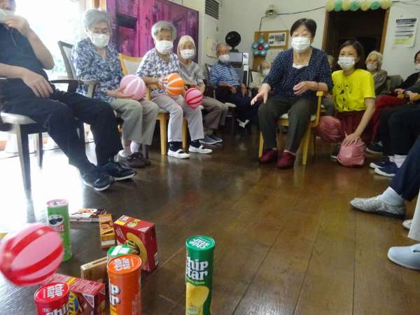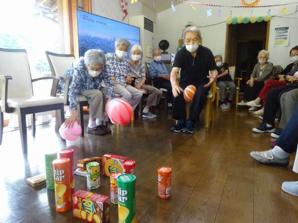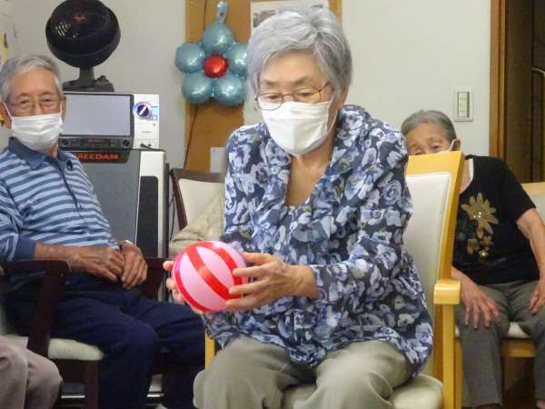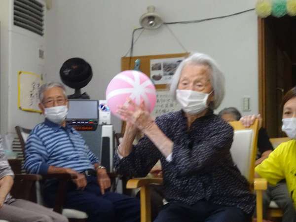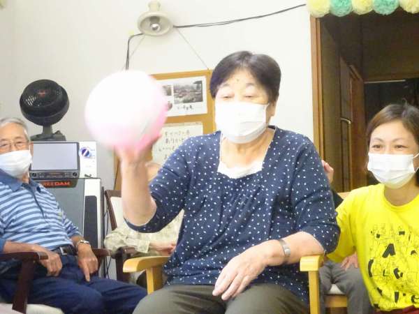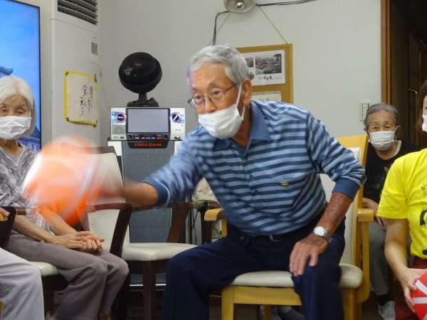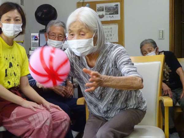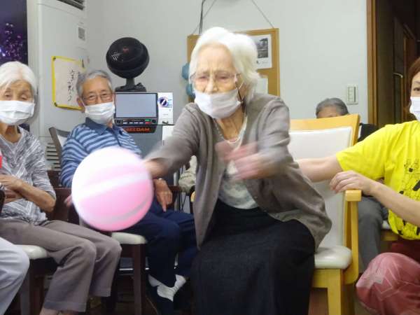 不規則に飛んでくるボールに皆様よく反応して、身体をいっぱいに動かします