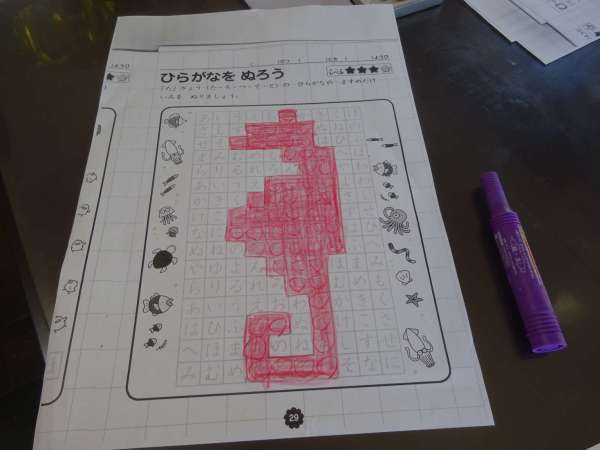 まずは・・・・対象のひらがなにしるしをつけてもらいまいました。