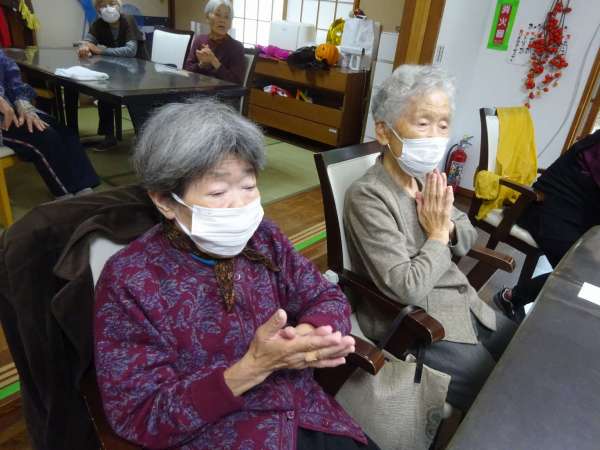 朝の体操では皆様の楽しそうな笑い声が聞こえていました