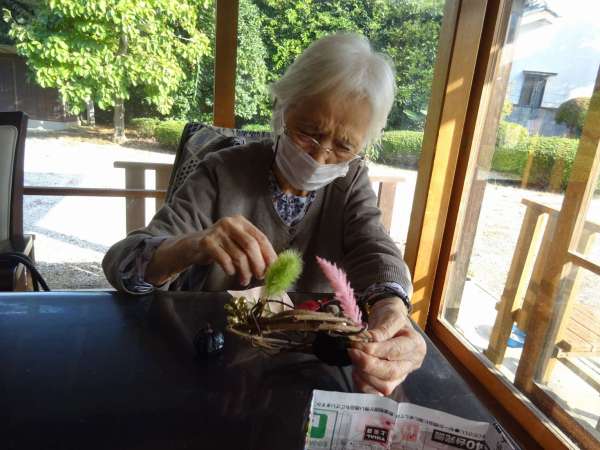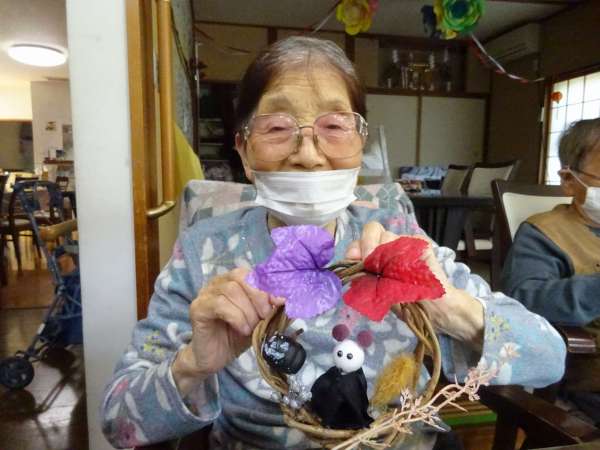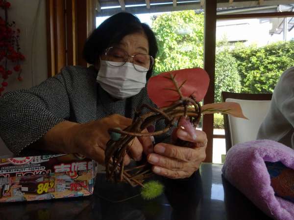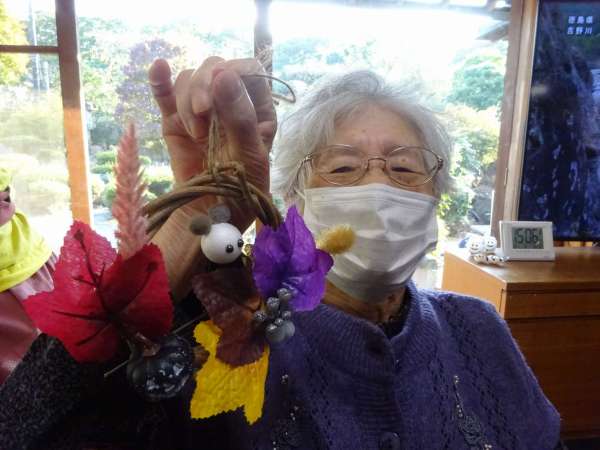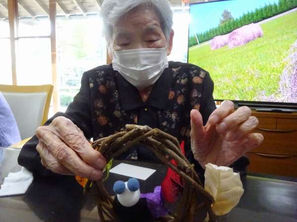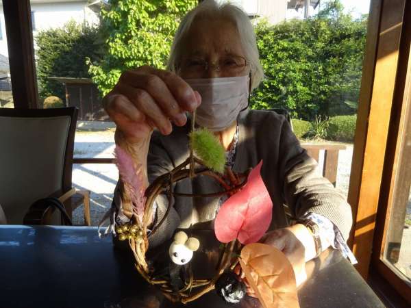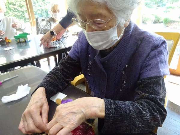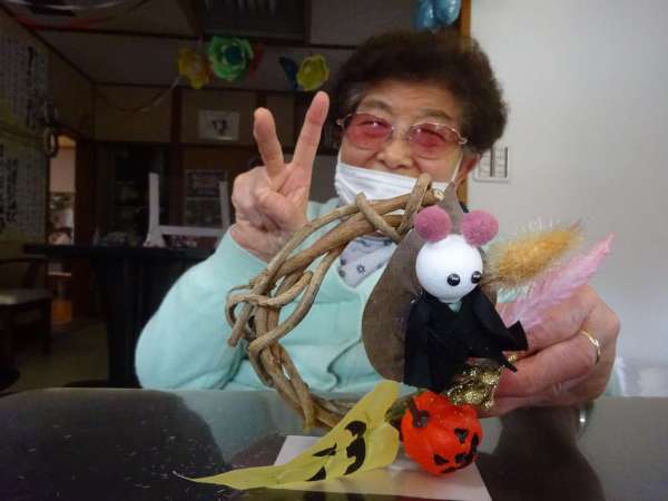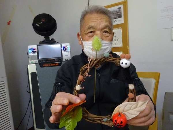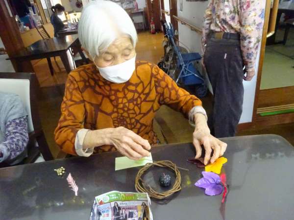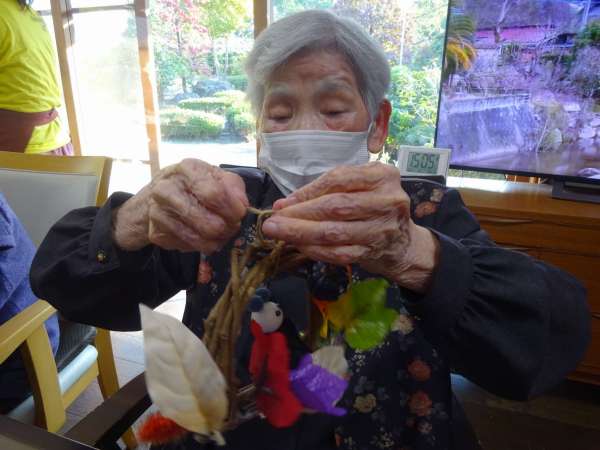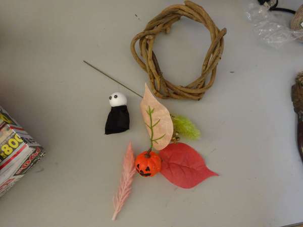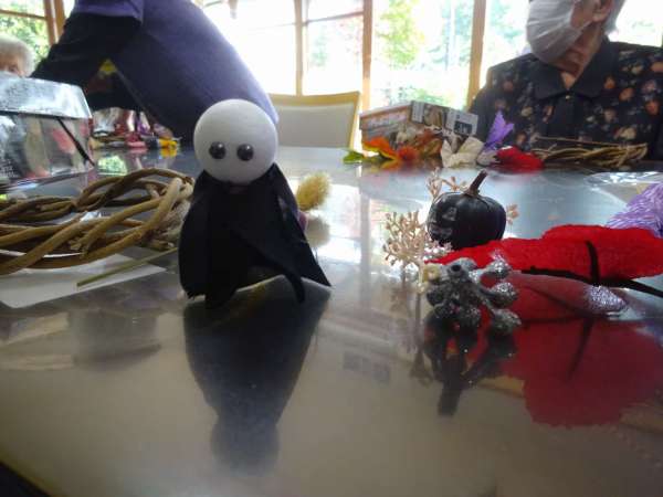 今日のレクリエーションは、ハロウィンが近くなってきているので、ハロウィンリースを作ってみましょう