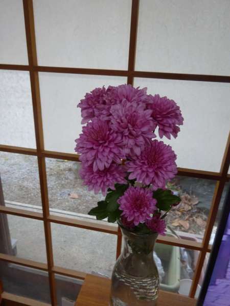 咲いていた菊がパタリと倒れ、寂しそうに折れていたので・・・・