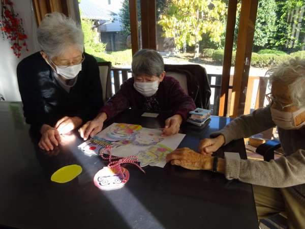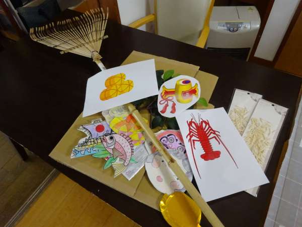 前回の、ご利用者に「縁起物の塗り絵」して頂いた作品を使わせて頂きます